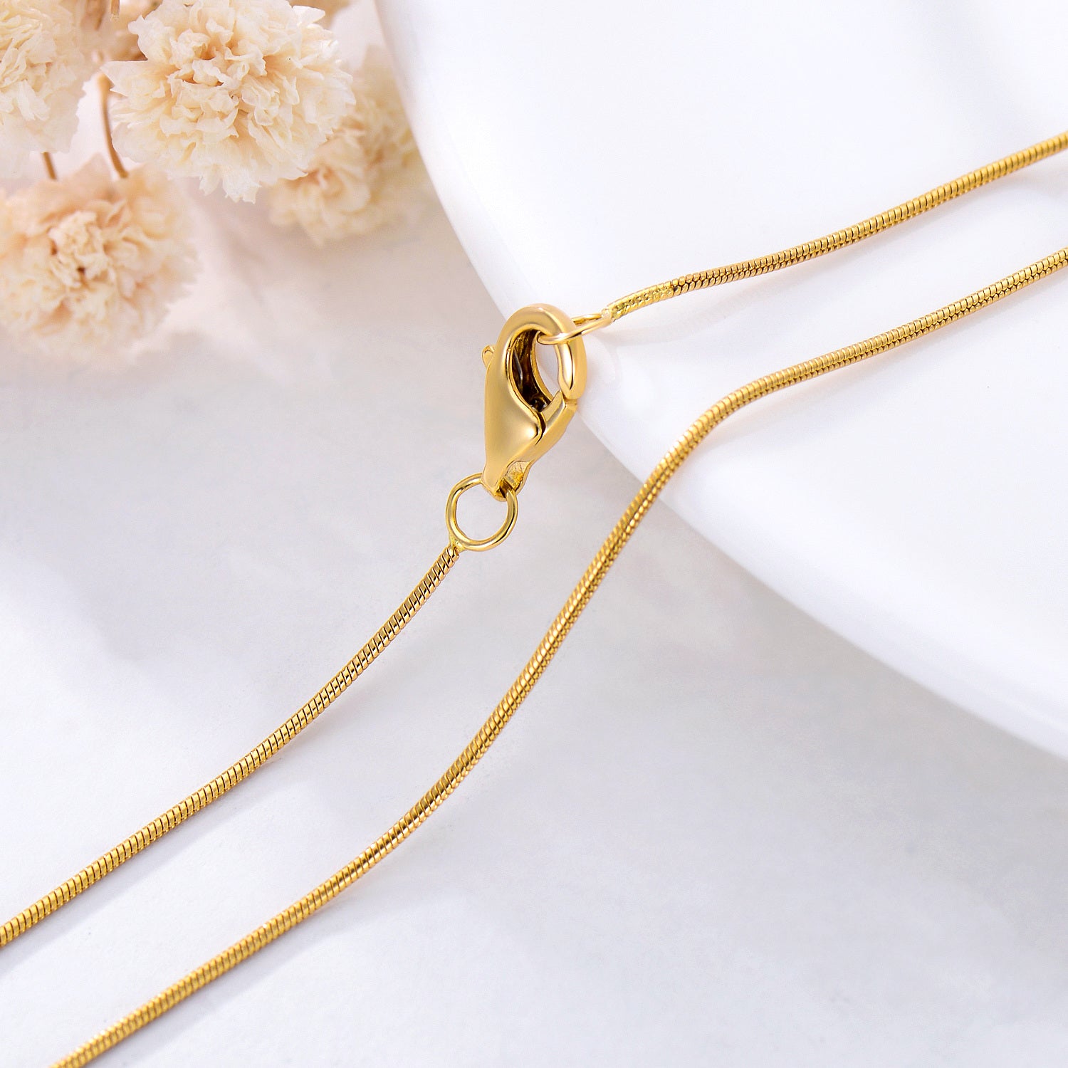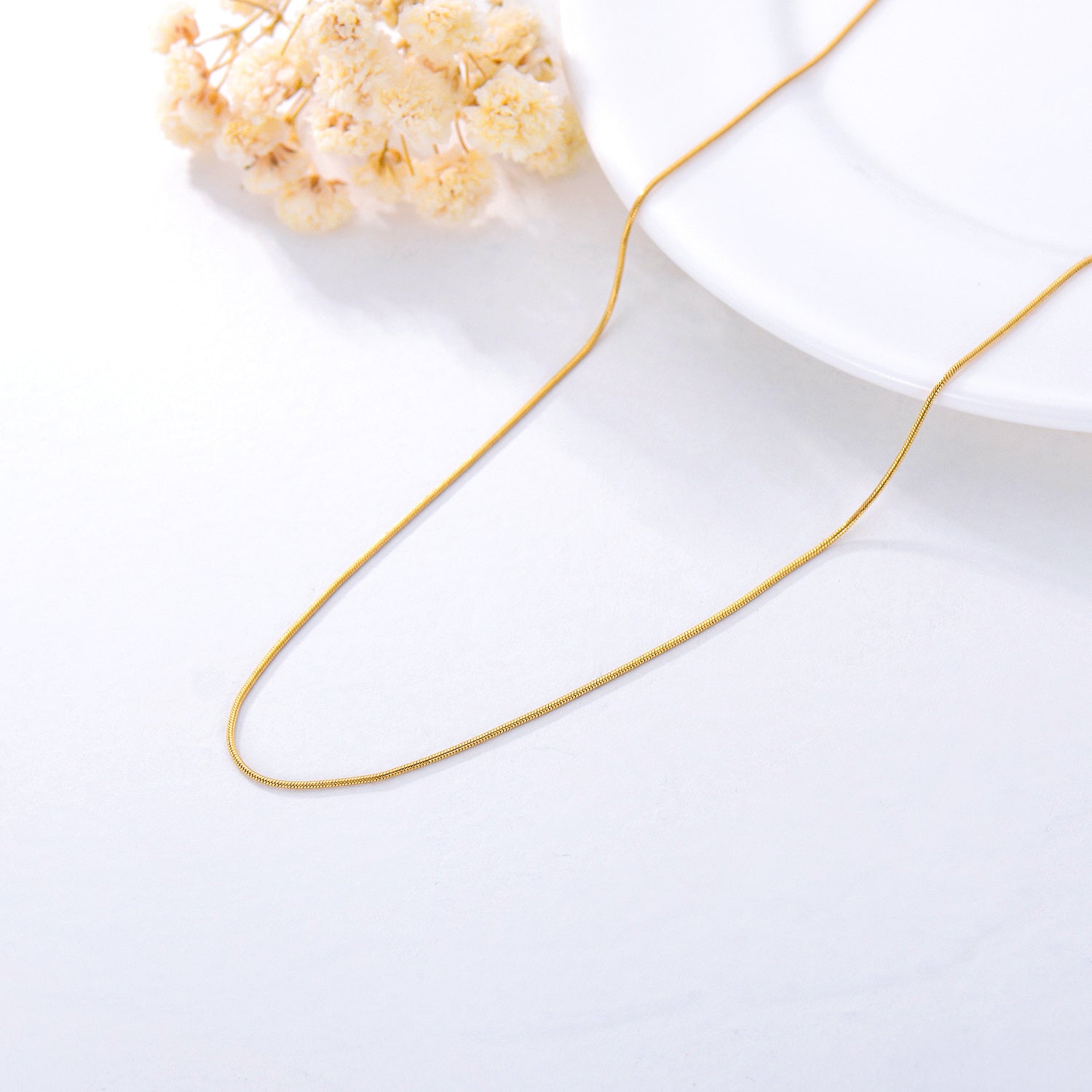 18k Solid Gold 0.7mm Snake Chain Necklace for Women Durable Strong Gold Chain Necklace
