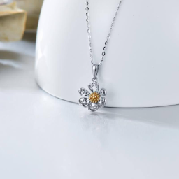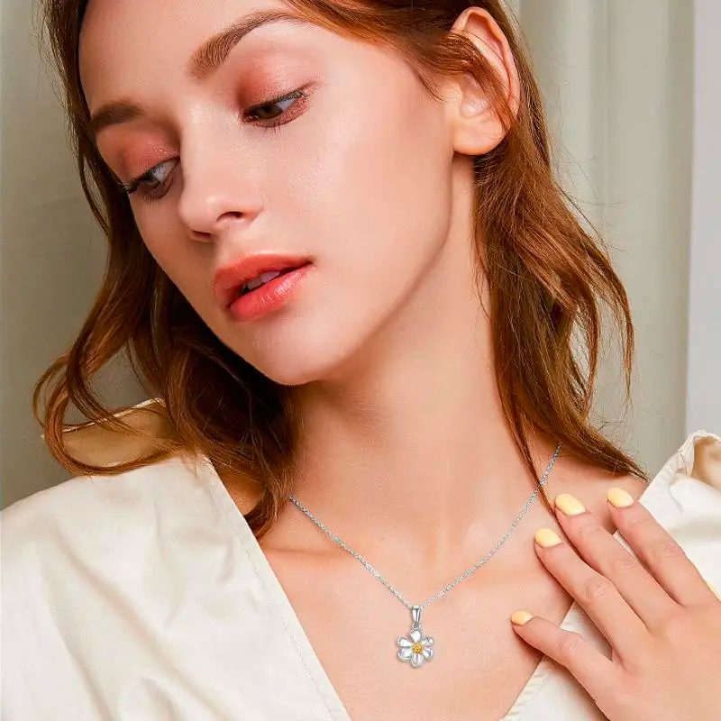 9K Solid Gold Daisy Pendant Necklace with 2 Tones