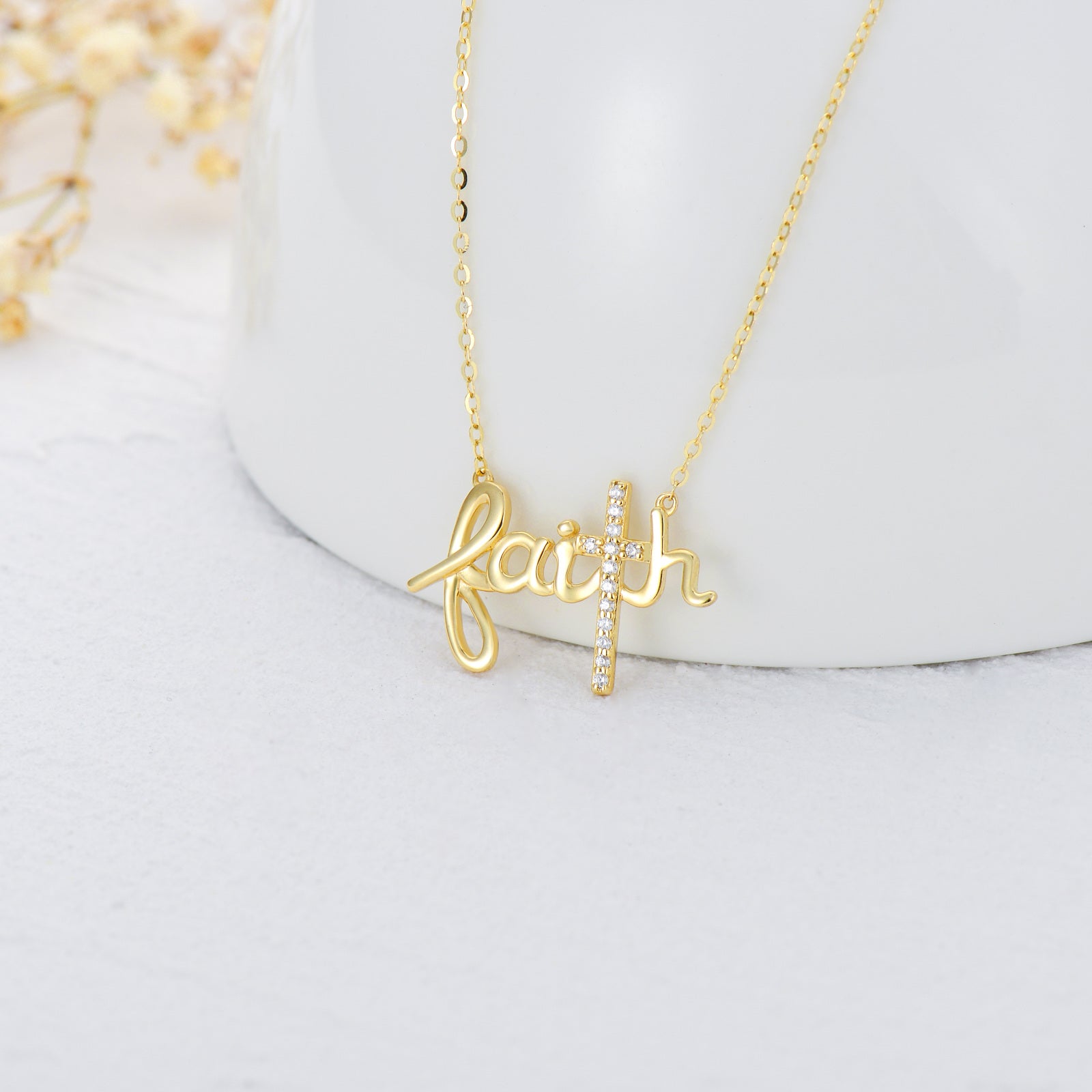 9K Solid Yellow Gold Faith Cross Pendant Necklace