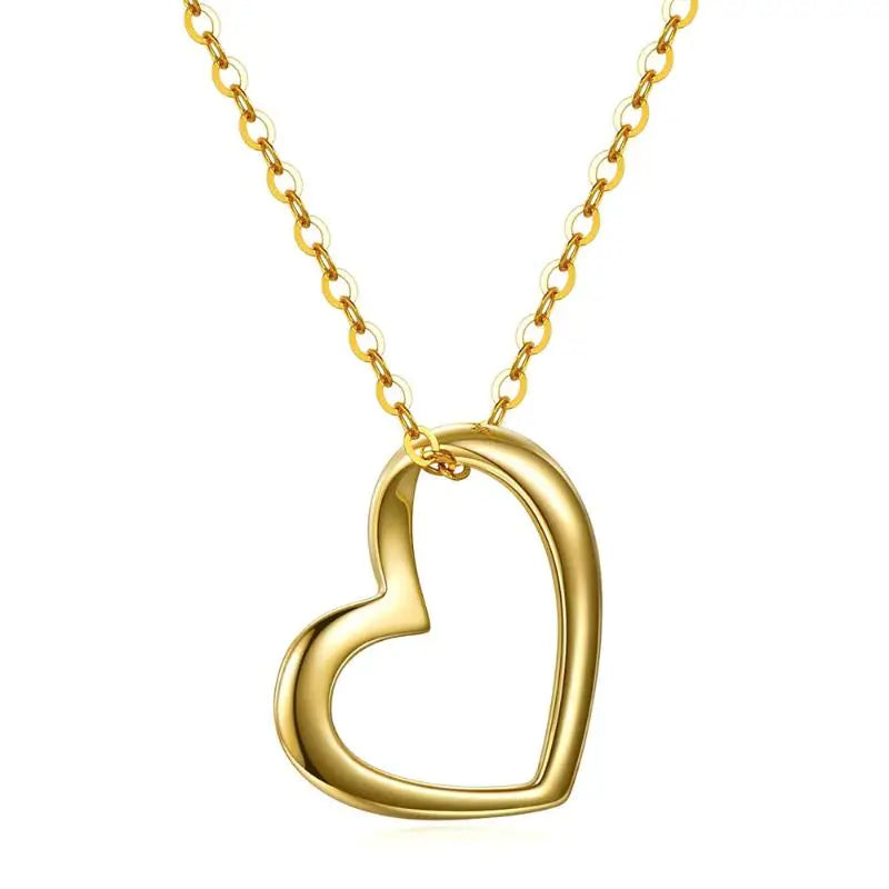 9k Solid Yellow Gold Heart Floating Pendant Necklace