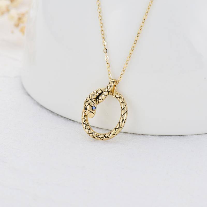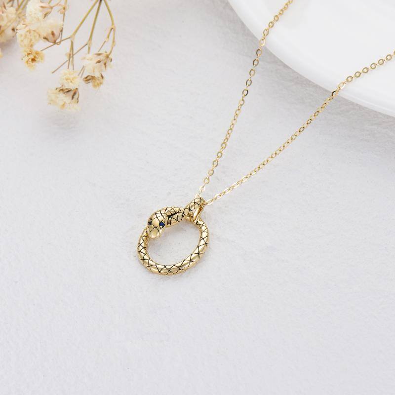 The 9K gold snake necklace with real gold Mobius strip pendant, wishing the bond of love between you and your lover is infinitely and become wiser in daily life.