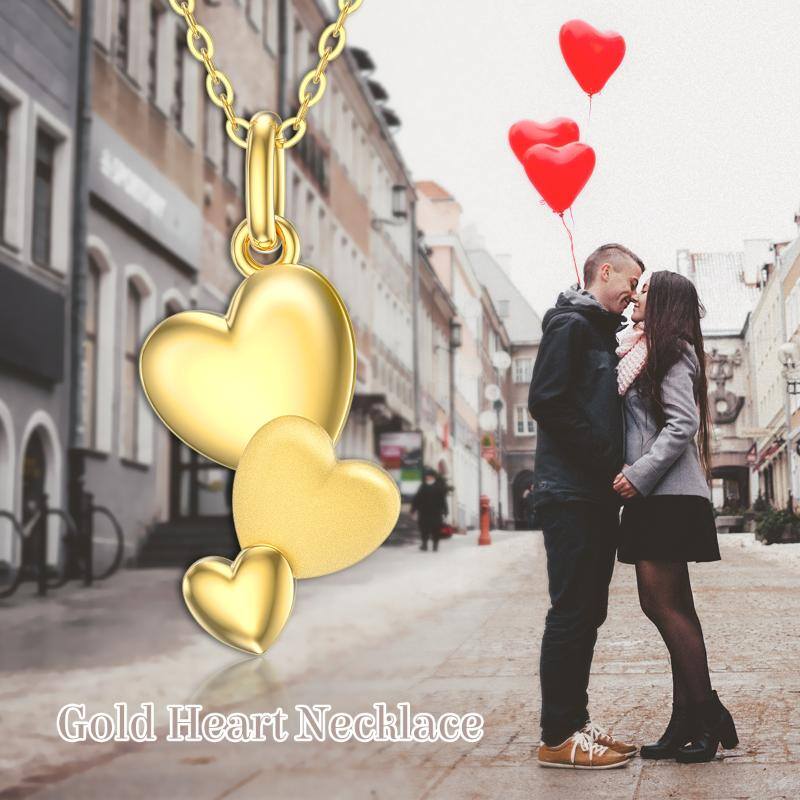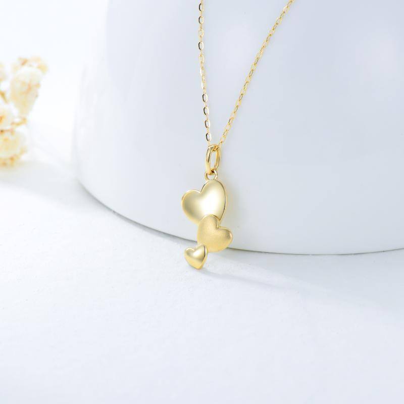 9K Solid Yellow Gold Three Heart Pendant Necklace