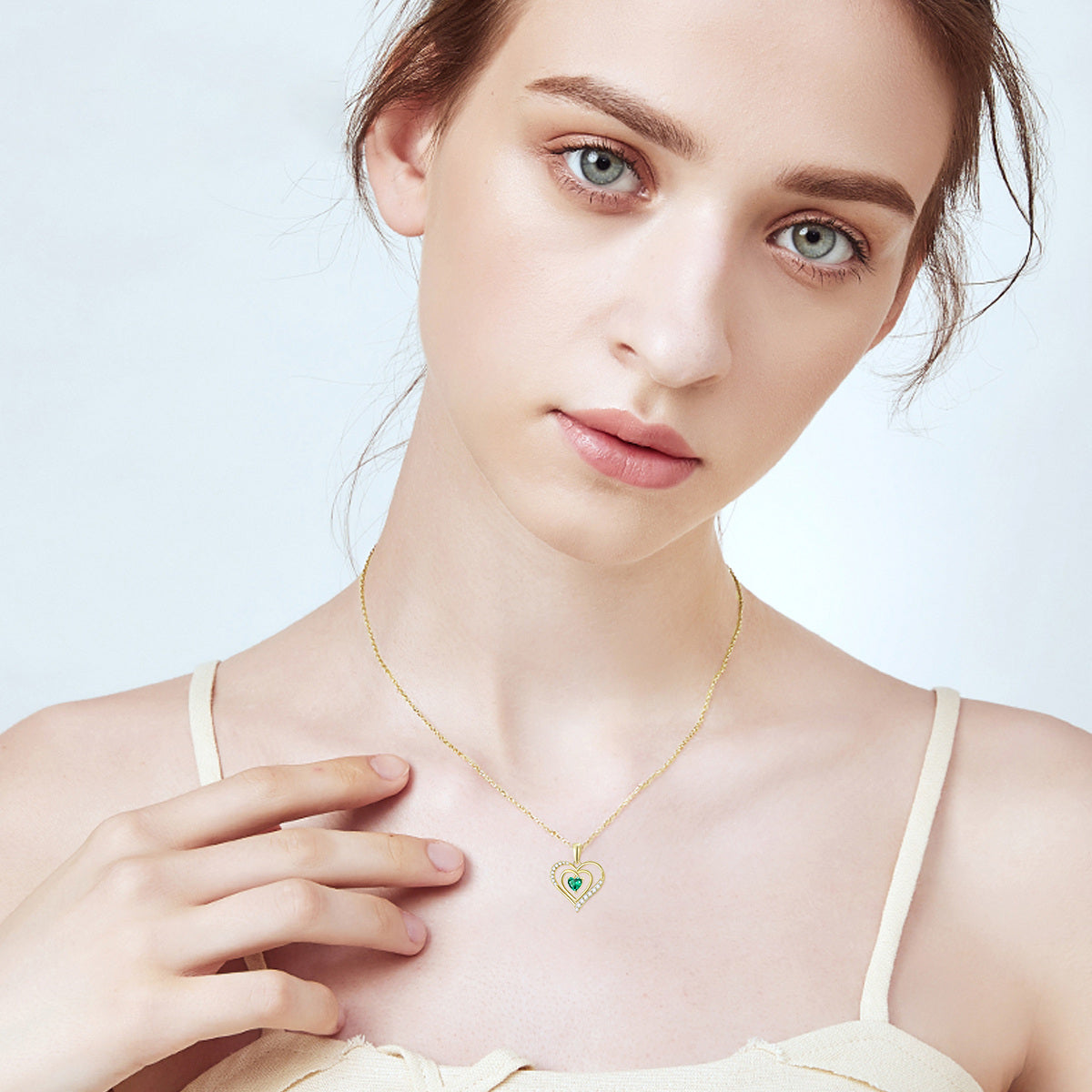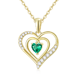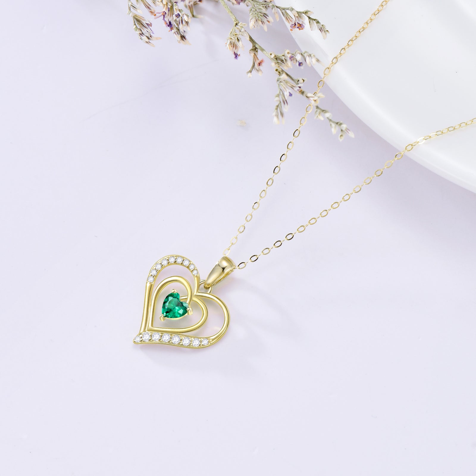 9K Yellow Gold Green Simulated Emerald Heart Necklace for Women, 16+1+1 inch