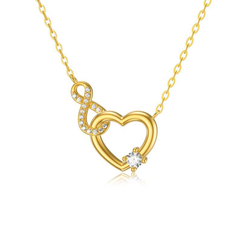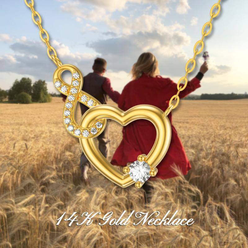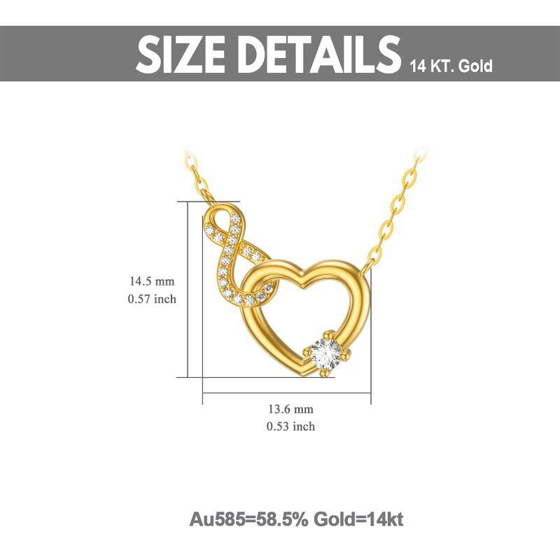 The 14k gold heart infinity necklace with 14.5(H)*14(W)mm gold open heart pendant, symbolizing forever love and loves. Solid gold infinity and heart necklace is perfect gifts for your wife, mother, sister, best friend, etc.